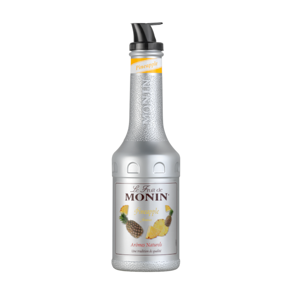 Ten tropikalny owoc, lokalnie występujący na południu Brazylii w twardej, kolczastej owocowej zbroi ukrywa złoty słodki, pachnący i soczysty miąższ. Od XVII wieku rozpowszechniany poprzez południe Ameryki po Europę dziś jest ulubionym i najbardziej znanym tropikalnym owocem na całym świecie. Słodko – kwaśne Puree MONIN Ananas wspaniale oddaje charakter smaku dojrzałego owocu, idealnie pasuje do tropikalnych odświeżających drinków, chłodzących napojów i jako polewa deserów. KOLOR Jasny żółty ZAPACH świeży i słodki ananas SMAK słodki ananas z nutką miodu POSMAK orzeźwiający ananas POŁĄCZENIA SMAKOWE miód, cytrusy, imbir, przyprawy APLIKACJE lemoniady, herbaty na zimno, smoothies, cocktails, polewy